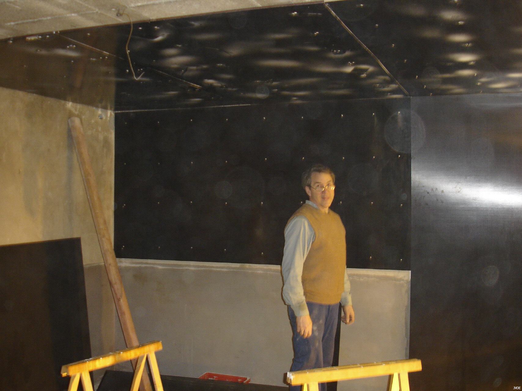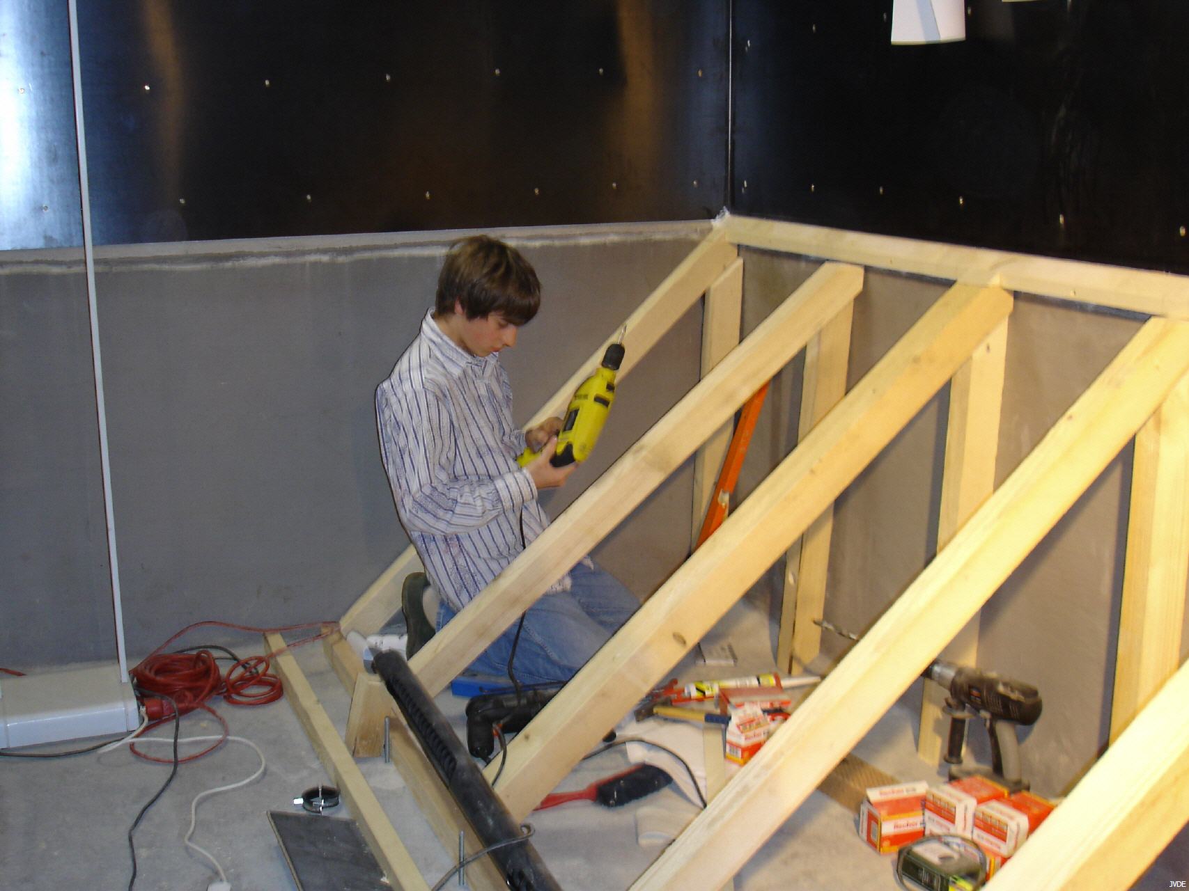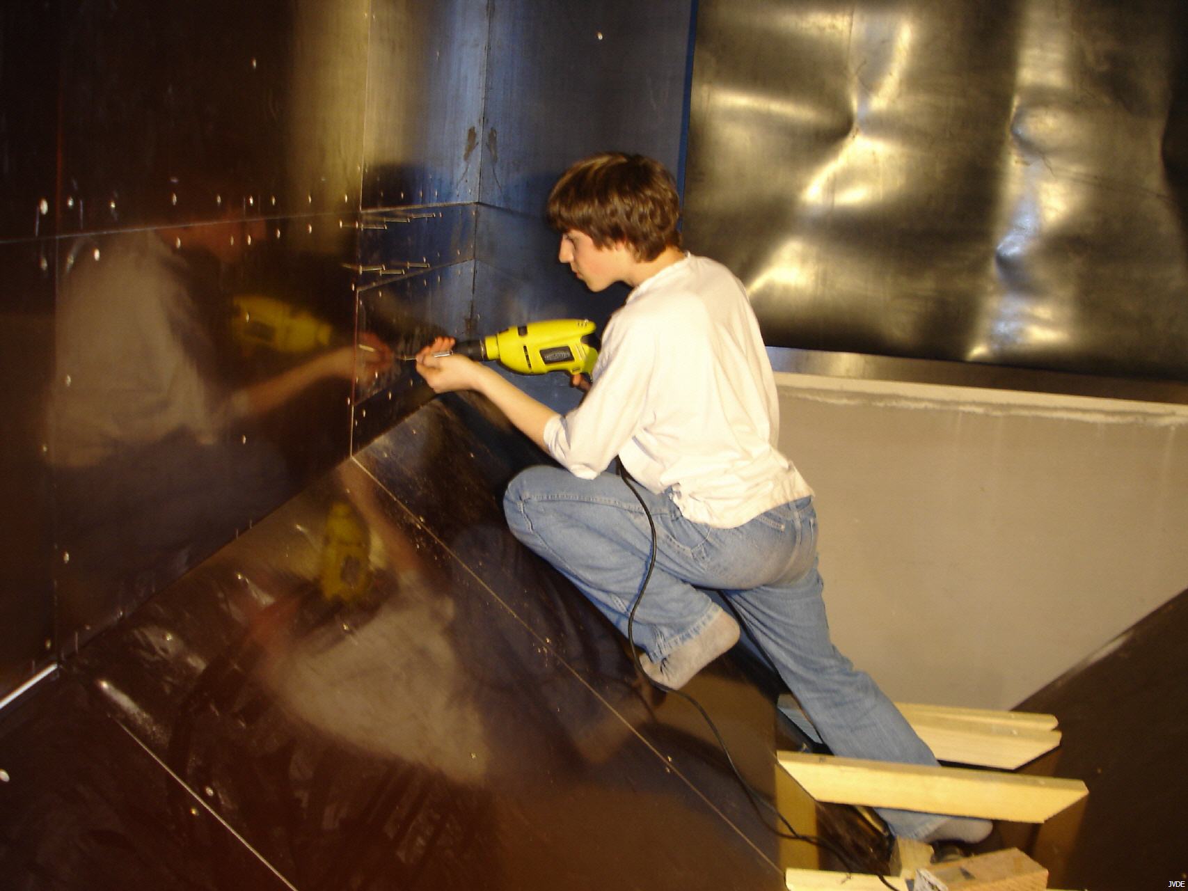 Im Pelletsbunker haben wir an den Kellerwänden und -Decken 10mm Filmplatten geschraubt. Sie sind glatt und stabil. |