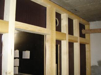 Der Bunker haben wir in Ständerbauweise errichtet und allseits (Boden, Wände, Decken) mit 10mm Schauben verdübelt. Die Aussenbeplankung haben wir aus 22 mm Birkensperrholz hergestellt. |