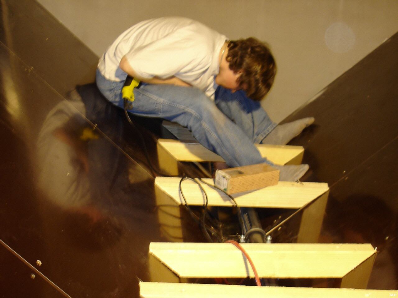 Die Innenbeplankung mit Filmplatten haben wir mit Silicon abgedichtet (nicht sparsam sein!) und verschraubt. |